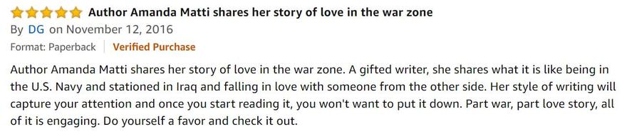 When Amanda, a 22-yr-old U.S. Navy Intelligence Analyst, deploys to Iraq in the summer of 2005, she does her best to prep mentally and physically to face the horrors of war. What she isn’t prepared for is to fall in love…with someone on the other side. For Amanda and her Iraqi translator Fahdi, it’s love at first sight. While serving together near the front lines of the Iraq War, the two realize their connection transcends cultures, countries and politics. Amanda knows she may have to choose between Fahdi and her career in the military, but actually finds herself at the center of an international criminal investigation spearheaded by a trifecta of U.S. government agencies – the NSA, CIA, and NCIS. Spurred by a draconian double-standard, investigators quickly compile a speculative list of offenses Amanda may have committed, one being having fallen in love with an Iraqi native. Together, Amanda and Fahdi defy governments and cause international scandal as they fight for justice and love. A true story of romance and war, but above all, an epic love that overcomes incredible odds.